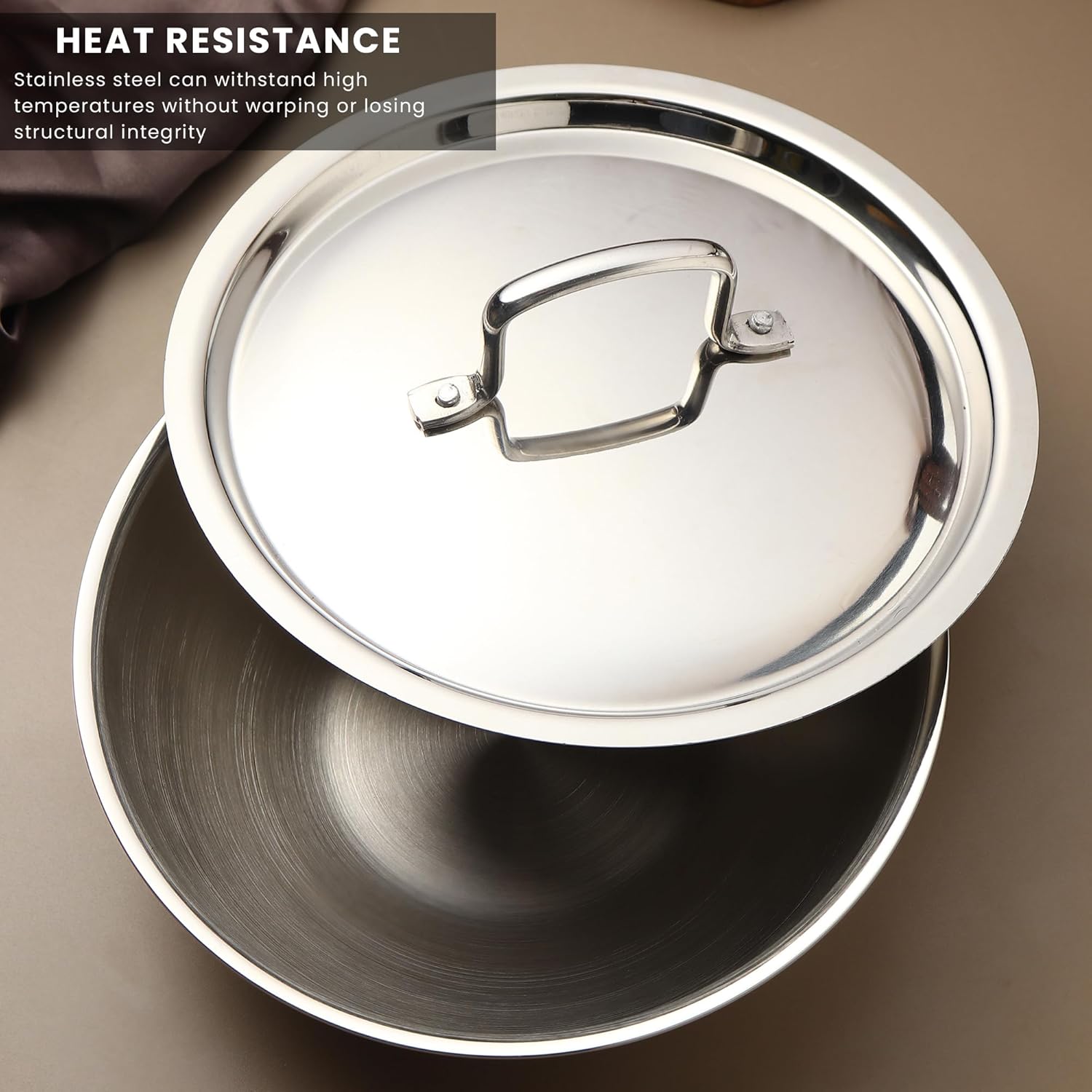 - Triply construction: Three layers (stainless steel, aluminum, stainless steel) for superior heat distribution